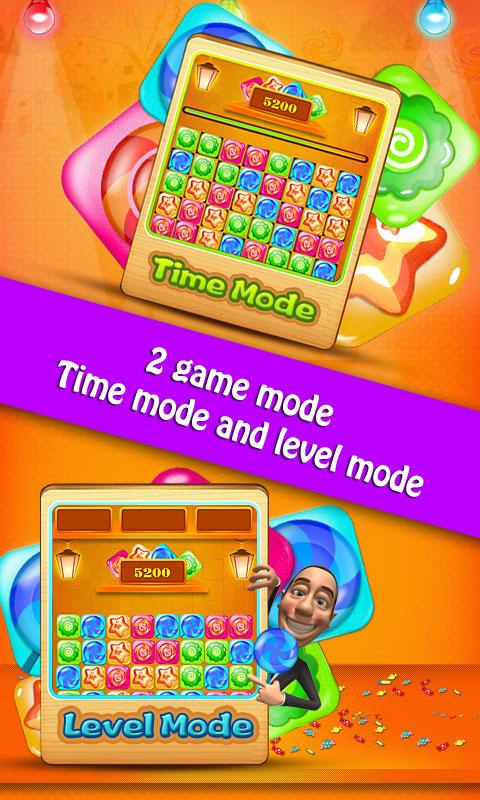Tap on two or more sweet candies to make them burst, and try to become the game winner in global players!
