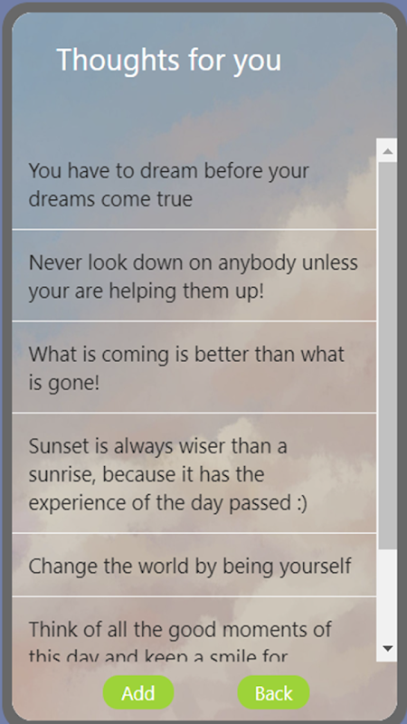 Questa app ti fa pensare positivo. Questa APP ti mostra molti pensieri ispiratori positivi.