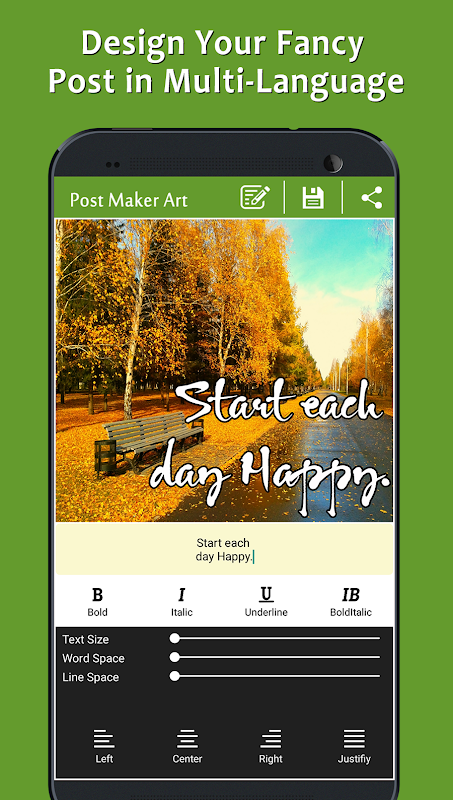 Crea post eleganti e di smistamento su Post Maker su foto, immagine o testo su foto.
