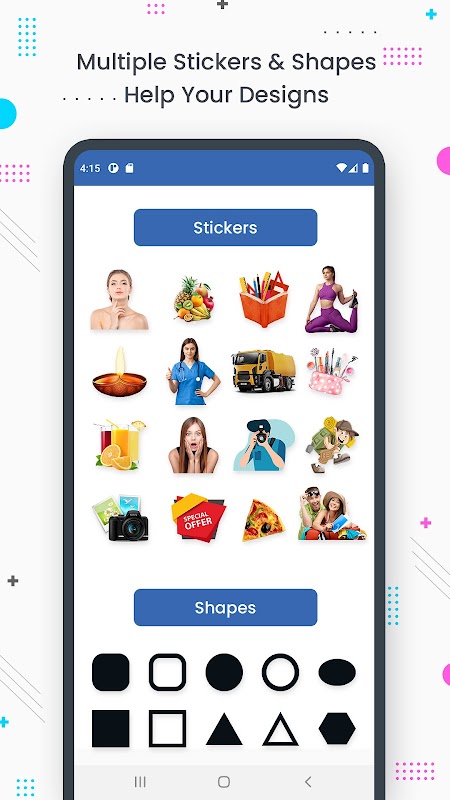 Poster Maker è un'app facile da usare, basta selezionare lo sfondo che ti piace nel rapporto secondo le tue necessità e aggiungere il testo con i caratteri del design del poster, aggiungere meravigliosi adesivi (scelti appositamente per la creazione di poster), aggiungere le tue immagini dalla galleria e creare perfetti manifesto ogni volta.