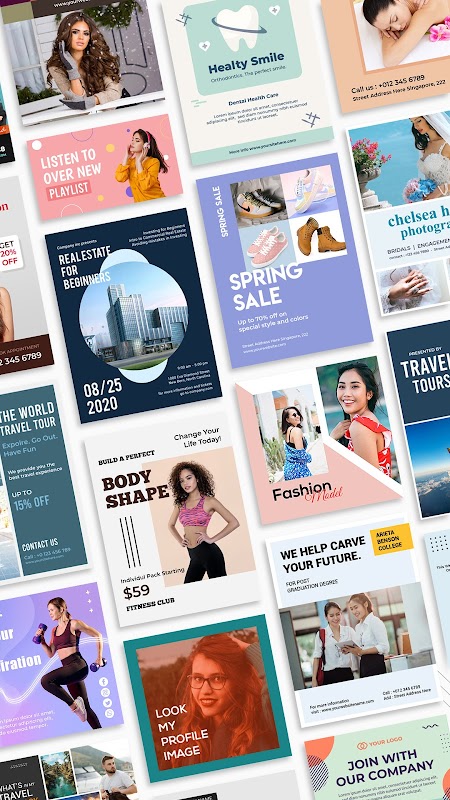 Vuoi creare poster promozionali, pubblicità, annunci di offerte, foto di copertina per il tuo negozio, ristorante, ufficio o siti social? Se sì, allora questa è l'app che fa per te.