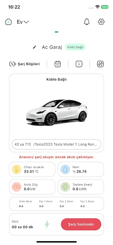 Şarj gücü ayarlama (5kW - 22kW arası)