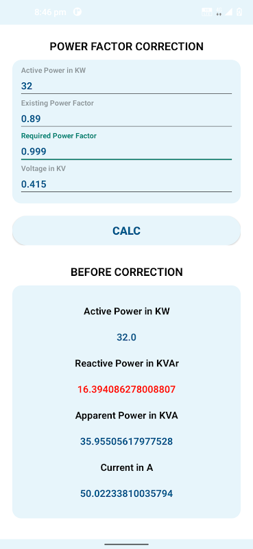 Power Factor Correction Calc
