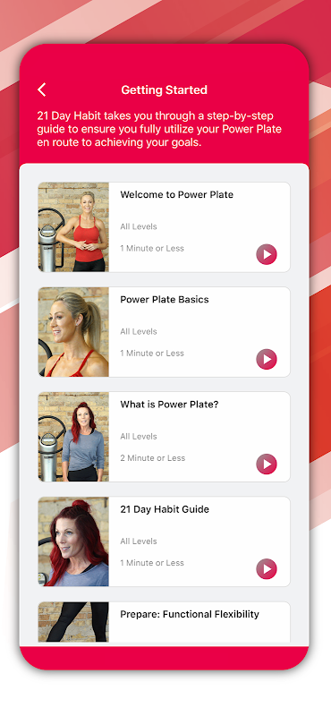 - Accedi a oltre 100 video che ti aiuteranno in ogni fase della tua routine: preparare, eseguire, recuperare