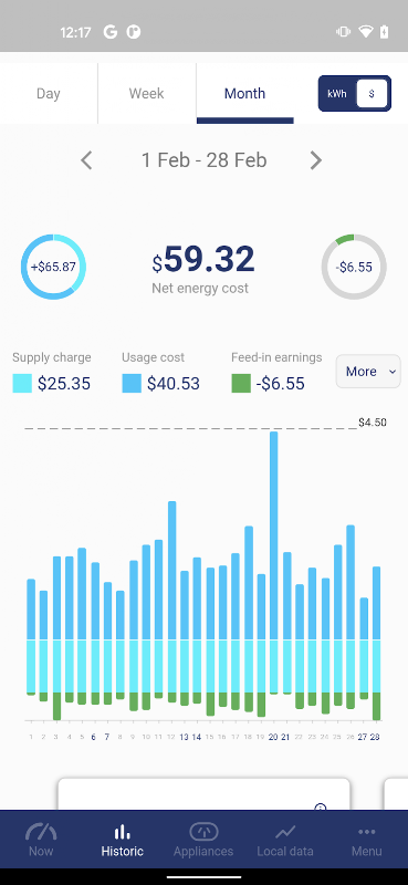 Tieni traccia dei tuoi dati di generazione, esportazione e consumo di energia solare fino al livello di un apparecchio. Prendi una decisione informata in base al consumo di energia della tua casa prima di installare o aggiornare il tuo solare.