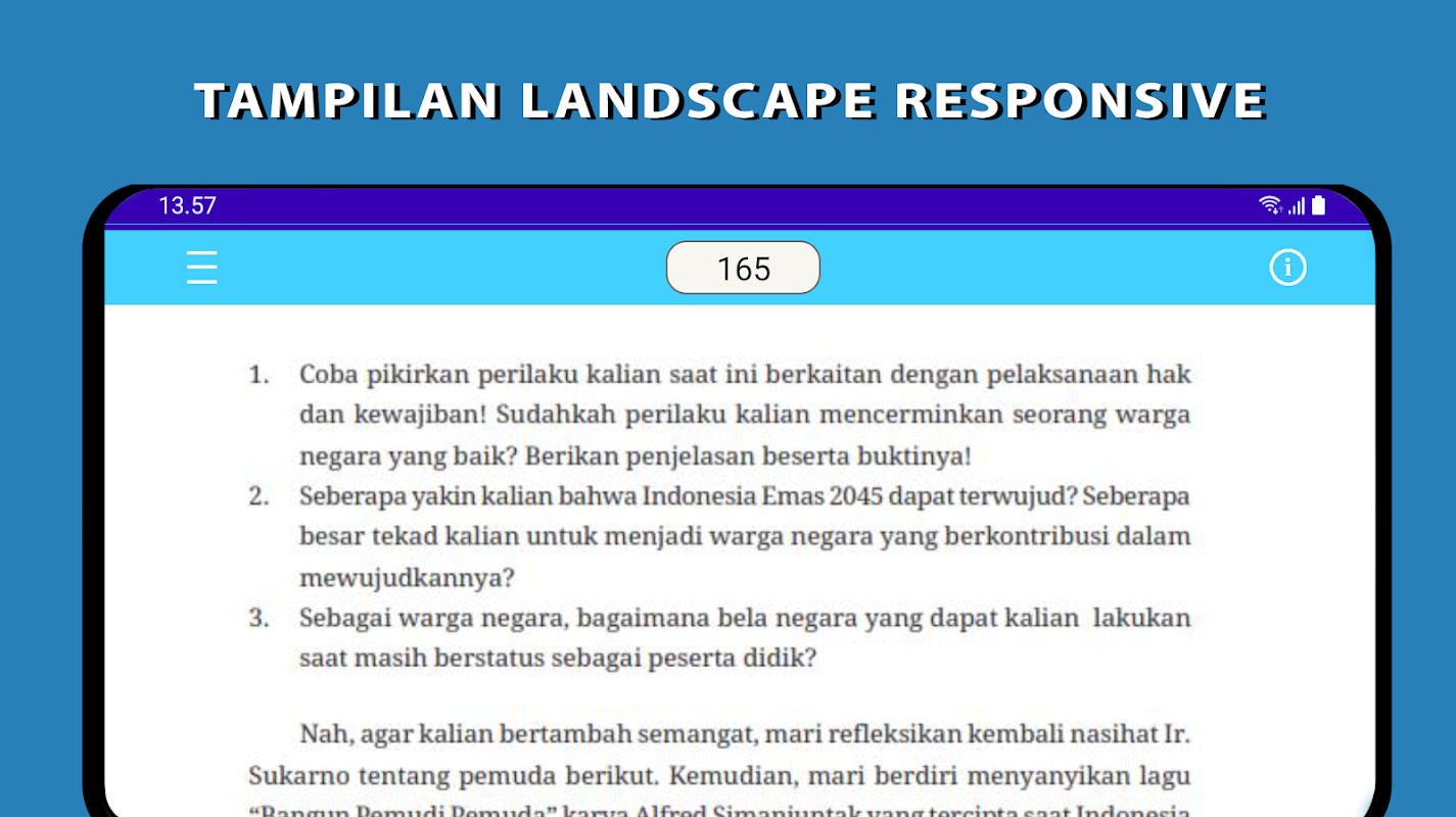 Libro dello studente su PPKN o Pancasila e l'educazione alla cittadinanza. Materiale proveniente da kemdikbud.go.id. Questa applicazione aiuta a fornire risorse didattiche ma non rappresenta il Ministero dell'Istruzione e della Cultura.