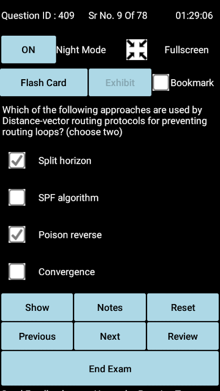 La funzione di revisione dopo aver sostenuto l'esame simulato ti consente di comprendere le risposte errate e la spiegazione della domanda.