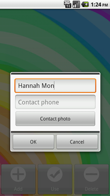 4. L'immagine che arriva sullo schermo è quella con il contatto di default, o si sceglie per i contatti fittizi.