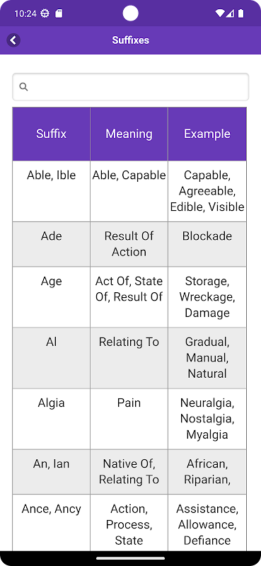 Puoi imparare prefissi, suffissi e parole radice comuni da questa leggera app Android.