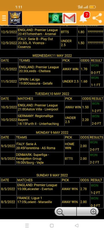 You can find big odds, high win rate, score predictions, half time / full time predictions and much more in our application every day.