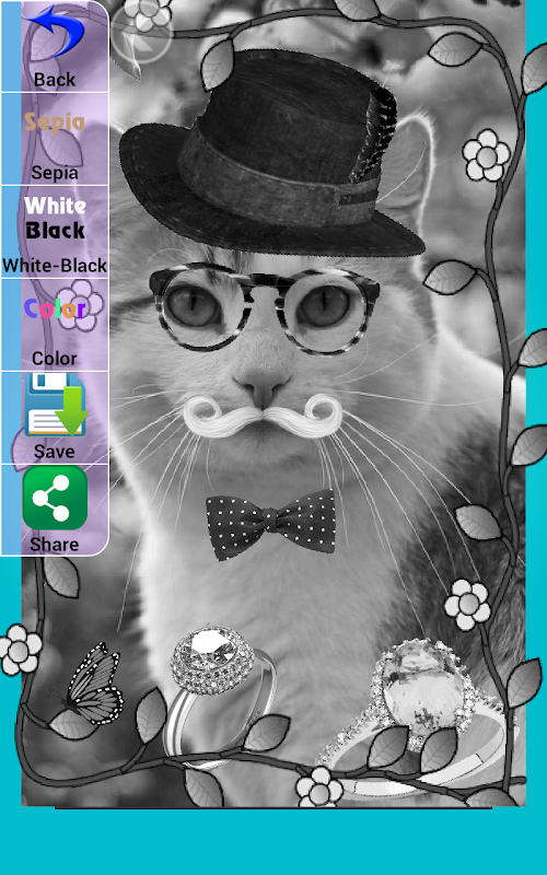 Basta scattare una foto del volto del vostro gatto. Quindi aggiungere corone, gioielli, vestiti, disegnare testo, chat icon, cornice e molto altro ancora.