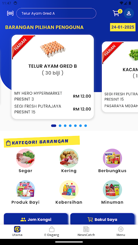 Questa app mobile è integrata con il portale Web Infopengguna e il sistema MyHarga, disponibile su https://pricecatcher.kpdn.gov.my, ed è progettata per fornire ai consumatori uno strumento semplice per controllare i prezzi giornalieri di tutti i prodotti alimentari di base ( 432 articoli all'inizio) in tutti i negozi e mercati in tutte le aree della Malesia. Con l'app, insieme a un accesso minimo a Internet, gli utenti possono controllare su richiesta i prezzi degli articoli e confrontarli con pochi tocchi. Gli utenti possono quindi decidere dove acquistare gli articoli in base alle loro esigenze e convenienza.