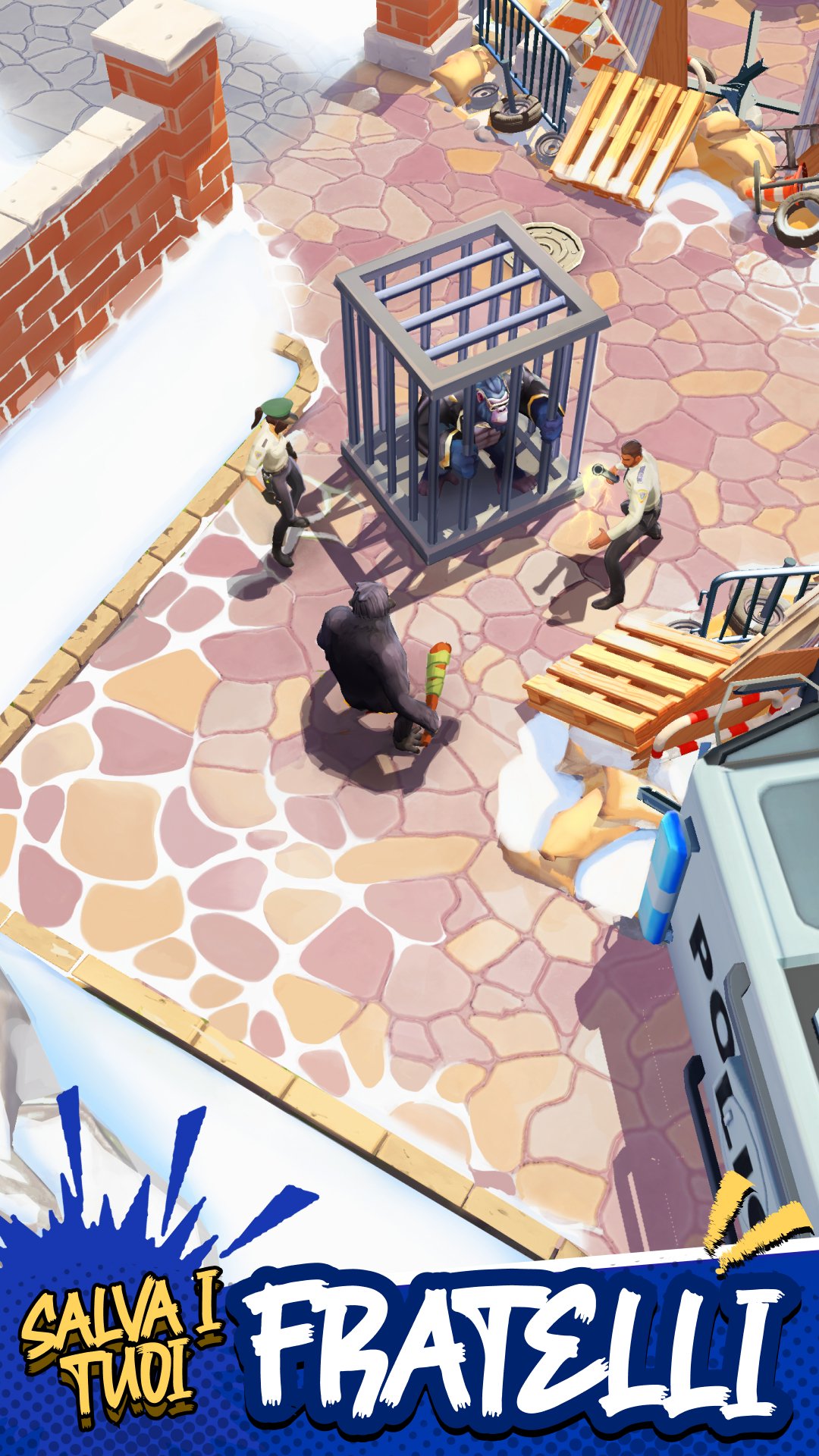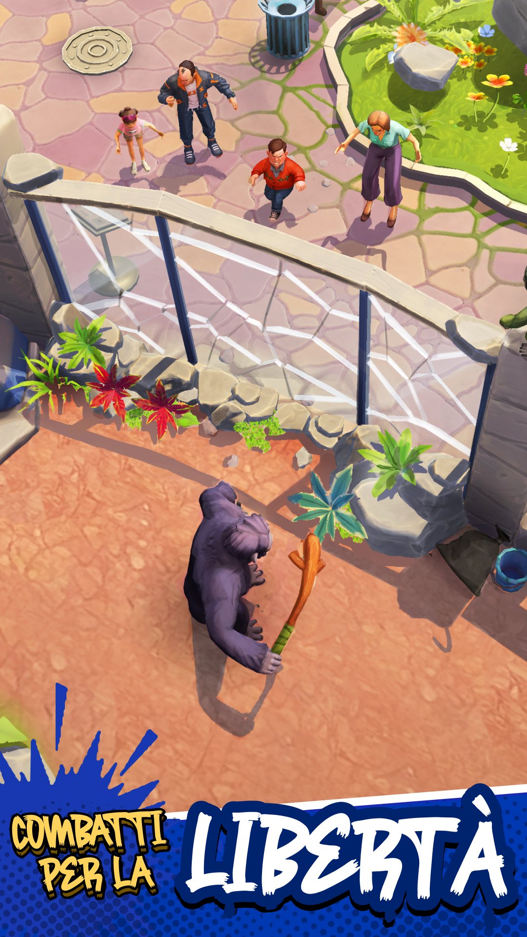 Aiuta ogni scimmia a fuggire dal guardiano e unisci i primati nella tua squadra. Scopri nuove scimmie, da un raro scimpanzé a un leggendario orangutan fino a un mitico leader gorilla, potenzia la loro forza e scatena il caos nello zoo.