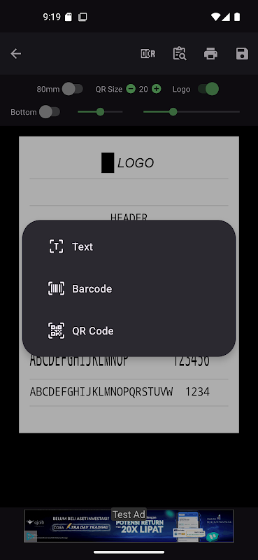Applicazione per stampante Bluetooth facile da usare.