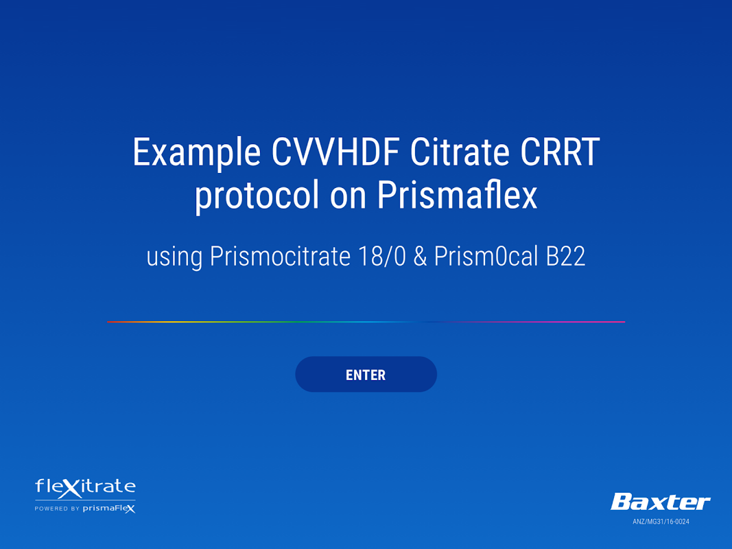 protocollo Prismaflex CVVHDF Citrate CRRT utilizzando Prismocitrate 18/0 & Prism0cal B22