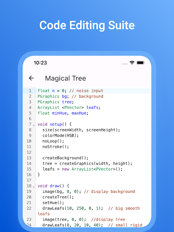 Scatena la potenza di Processing e p5.js direttamente dalle tue tasche con Processing IDE, il compagno di codifica definitivo per il tuo dispositivo mobile. Progettato su misura per gli appassionati di codifica creativa, studenti, educatori e artisti digitali, Processing IDE trasforma il tuo smartphone in una tela dinamica per l'innovazione e la sperimentazione.