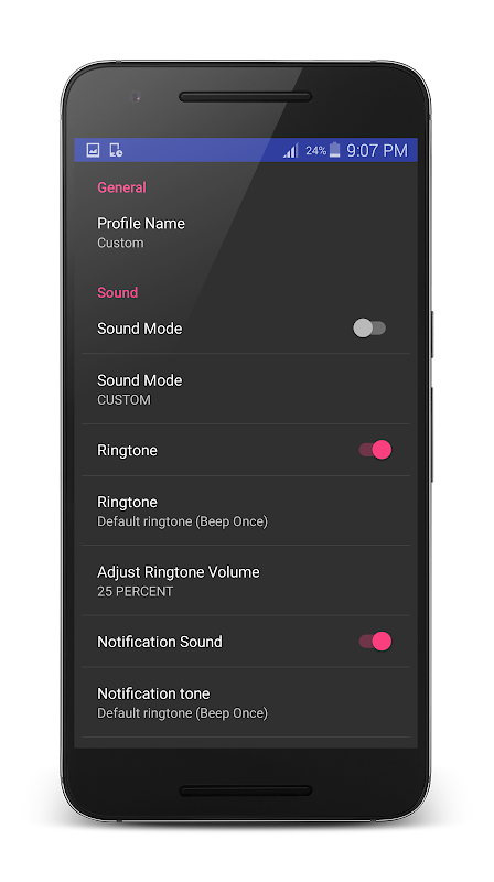 App allows 10 profiles to be customized as you prefer. You can Enable/ Disable them by single click.