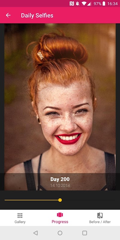ProgOn ti offre una facile opportunità per tenere traccia dei tuoi progressi o di cambiare le immagini. È perfetto se vuoi monitorare la tua perdita di peso, vedere i tuoi guadagni muscolari, fare un selfie ogni giorno, registrare la costruzione della tua nuova casa o vedere come sta crescendo tuo figlio. Puoi scorrere i tuoi progressi e confrontare i cambiamenti nelle immagini prima e dopo. Puoi esportare i risultati come immagine o GIF.
