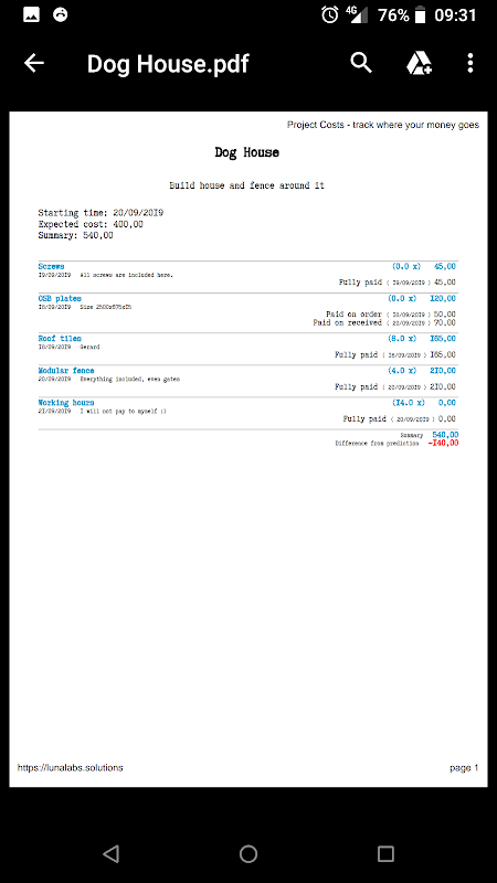 Il costo del progetto è e sarà un'app gratuita per tenere traccia di ogni costo del progetto che potresti avere mentre lavori. Non importa se ti occupi della lavorazione del legno o dello sviluppatore di software, i principi sono gli stessi. Hai un progetto, alcune spese e alcuni pagamenti. L'applicazione è totalmente anonima poiché tutte le cose in cui entri non vengono mai condivise con nessuno.