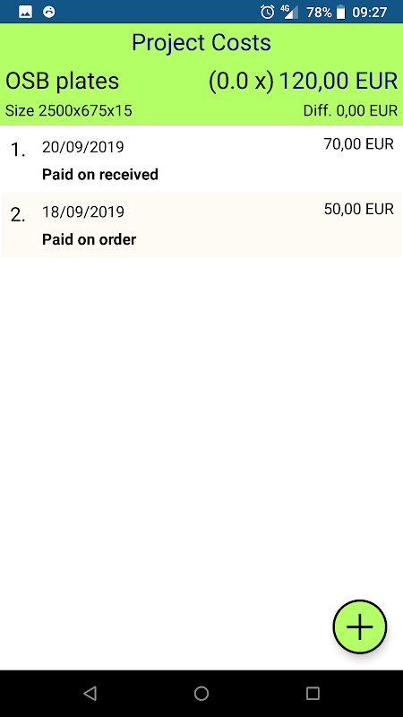 Con i costi di progetto dell'app mobile puoi anche aggiungere manualmente i pagamenti. Questo è utile quando hai un appaltatore che fa parte del tuo lavoro e ne paghi alcuni in anticipo e altri quando hanno finito con il loro lavoro. In questo modo puoi vedere quanto e quando è stato pagato.