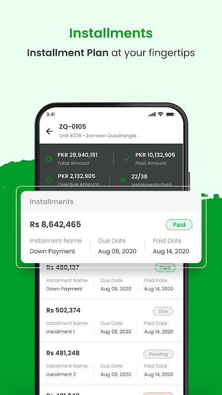 Controlla lo stato delle rate, ad esempio In sospeso, Scaduto, Ricevuto o Pagato.
