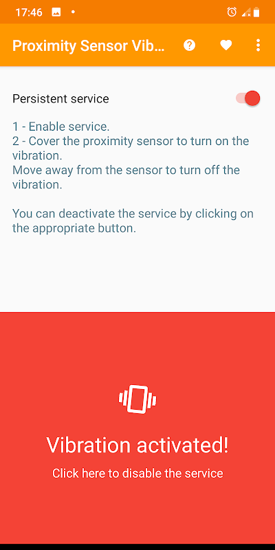 This app allows you to turn on the vibration when you cover the proximity sensor.