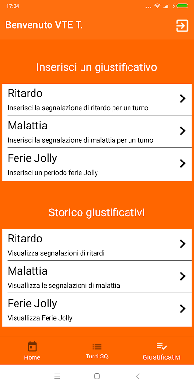 Visualizzazione dei turni di lavoro e gestione giustificativi