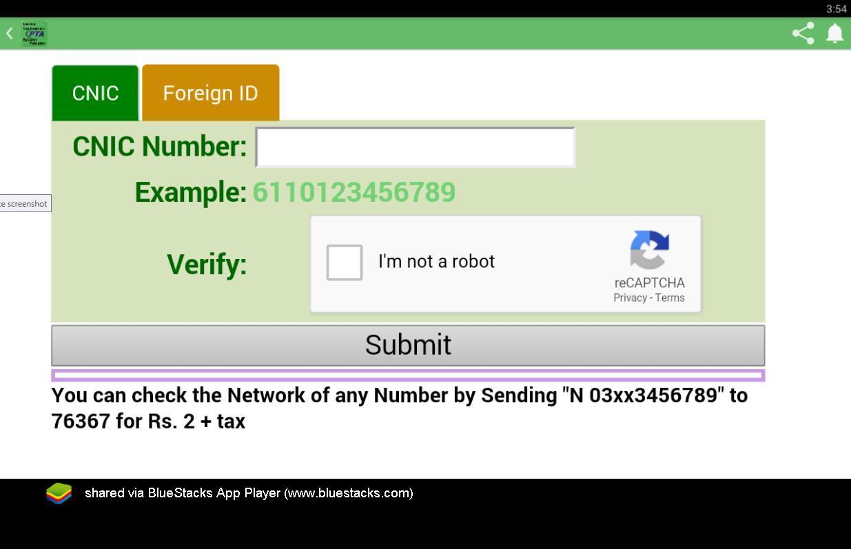 your CNIC, enter your CNIC and click Submit. In case of Foreign Nationals, click on Foreign ID