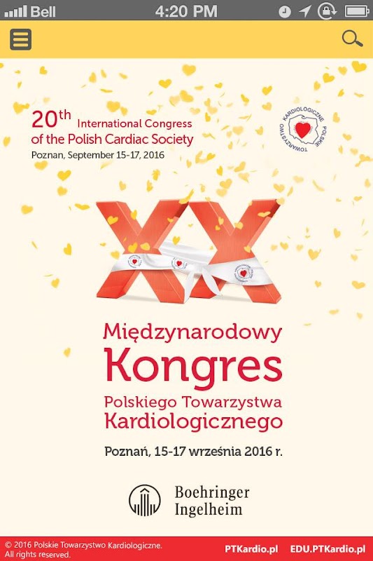 Mobilna aplikacja została przygotowana dla uczestników XX Międzynarodowego Kongresu Polskiego Towarzystwa Kardiologicznego, który odbędzie się w dniach 15-17 września 2016 roku w Poznaniu.