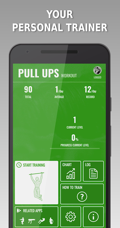Il programma PULL UPS è un trainer facile e semplice per sviluppare dinamicamente forza e muscoli esercitando i pull-up.