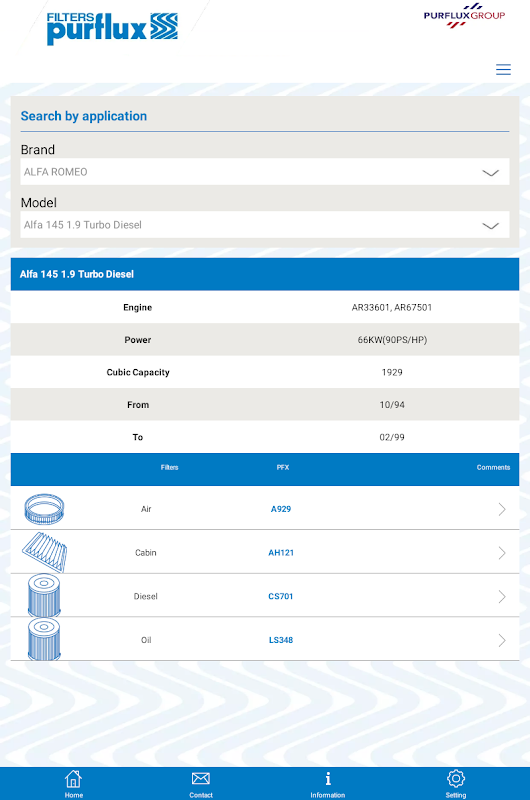 L'app Purflux ti darà accesso alla gamma completa di filtri PURFLUX olio, aria, carburante e abitacolo per auto e veicoli commerciali leggeri.
