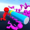 Find your way to the end of the level and push the crowds with your stick on the way!