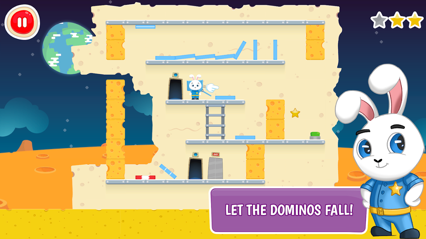 Move around through portals and use lots of power-infused dominoes like flying and rolling to open the door to the next adventure. Can you help Bunny solve these brain-bashing Pushover inspired domino puzzles? With over 100 challenges ahead, you'll have plenty of chances to try! Warning: highly addictive!