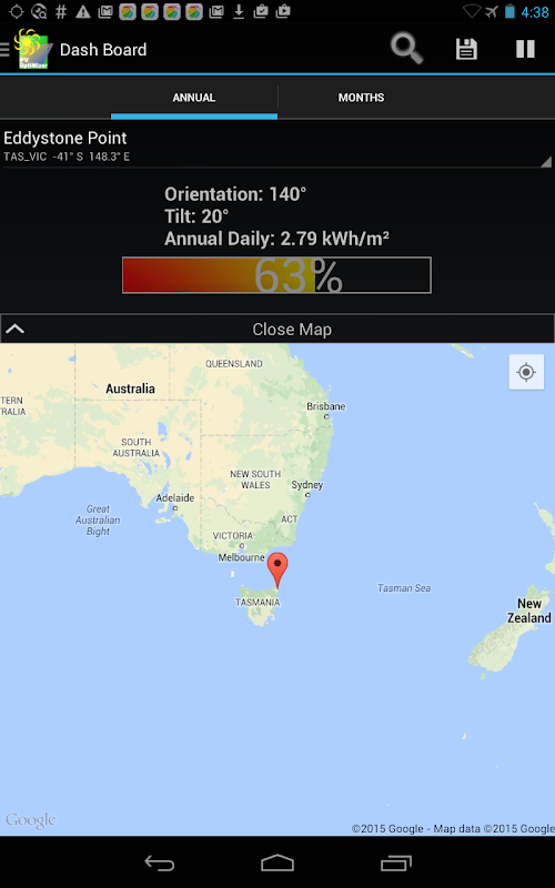 • Instant feedback indicating the percentage of maximum energy output that would be generated for the particular tilt and orientation in the specified location.
