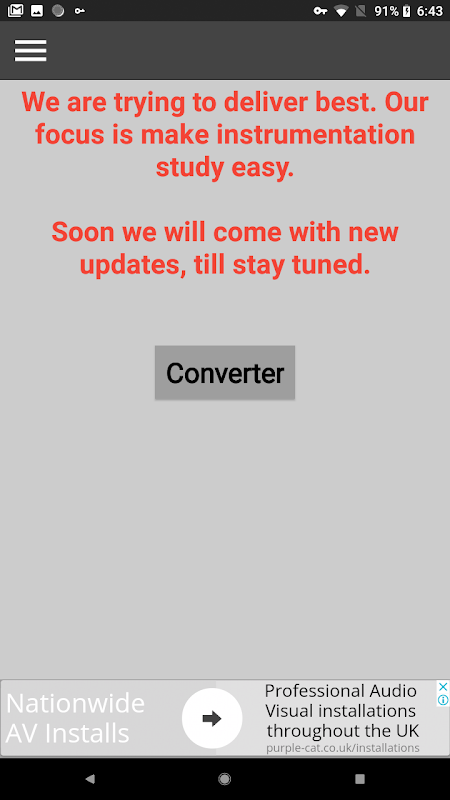 This application is developed to convert the process variable (PV) to transmitter output (%). This is to help the students and the working professionals.