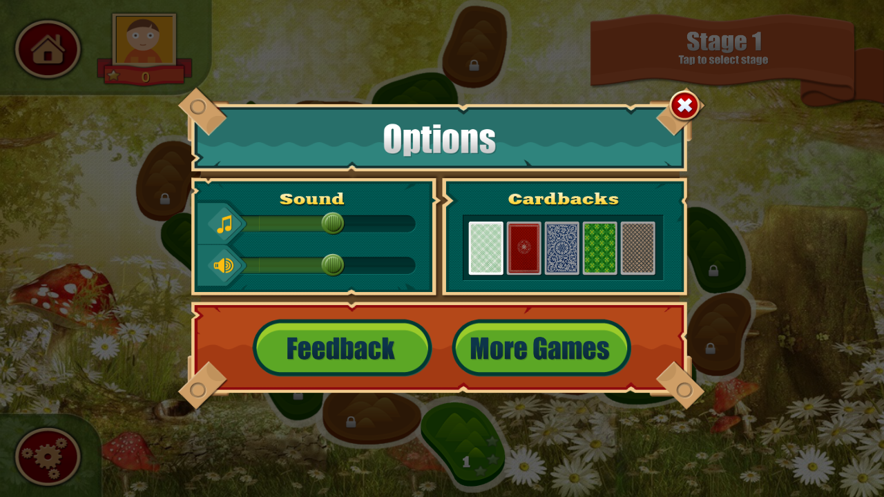 Pyramid Solitaire is a multi-deck solitaire game and great, challenging fun for the intermediate to advanced player. 100 levels provide plenty of gameplay amidst the whimsical woodland scenes. A wily knight is your suited guide through the levels as he provides tips and hints. Piles can be built down regardless of suit, but only groups of cards built down by suit can be moved together. The object is to remove all the cards from play. Customization is available for card motifs and sounds. Excellent table themes and a robust stats card round out this game.