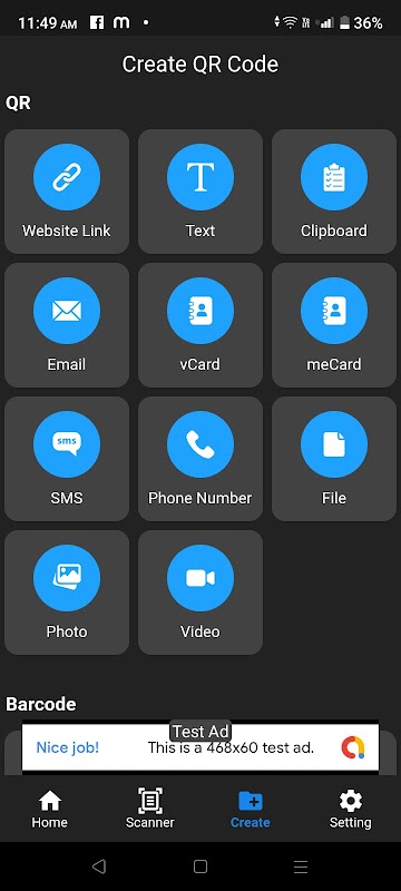Scanner e generatore di codici a barre QR per creare tutti i codici a barre