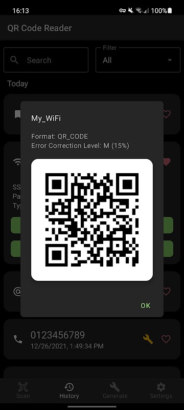Besides QR codes, barcodes of products or books (ISBN barcode) can be scanned and generated.