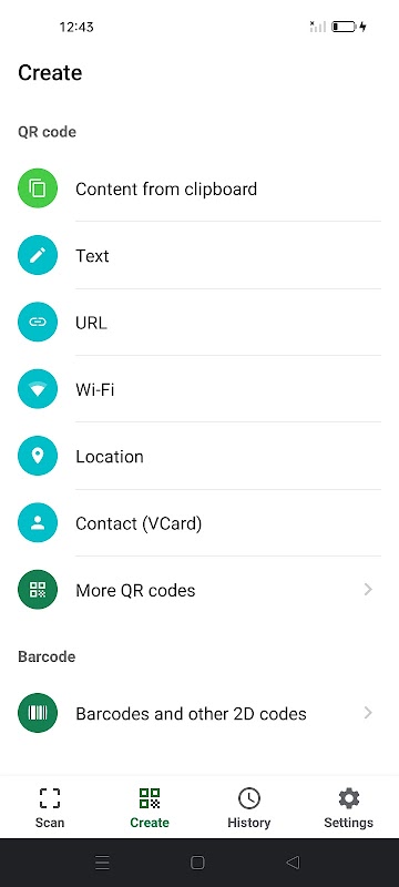 • Scansiona e crea formati di codice supportati: QR Code, Data Matrix, Aztec, PDF417, EAN-13, EAN-8, UPC-E, UPC-A, Code 39, Code 93, Code 128, Codabar, ITF.