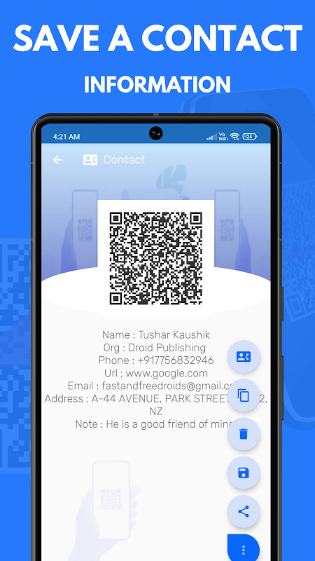 Supporto per azioni intelligenti: componi numeri, apri siti web, connettiti al Wi-Fi, invia e-mail/SMS o salva i contatti direttamente dopo la scansione.