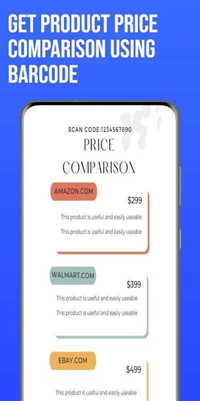 Scansione delle informazioni sul prodotto: scansiona facilmente i codici a barre dei prodotti per accedere a informazioni dettagliate come prezzi, dettagli del prodotto e disponibilità da vari negozi online. È un ottimo strumento per confrontare i prezzi e prendere decisioni di acquisto informate.