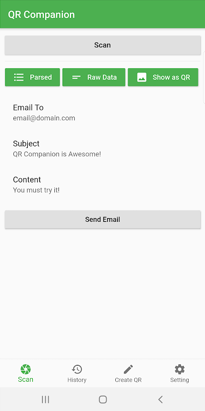 QR Companion is an application that supports reading and creating/generating QR Codes. Handling QR Codes in your smartphone never been easier!