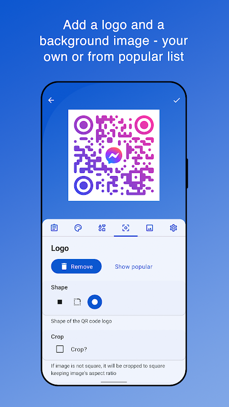 - Seleziona colori e forme per ogni parte del codice QR