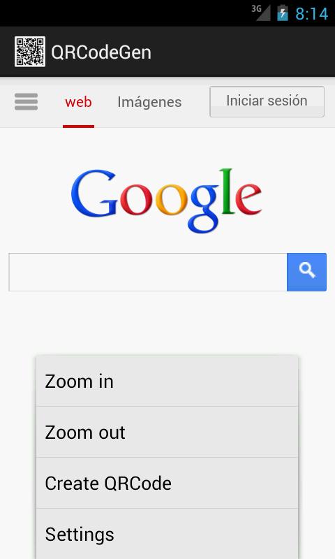 QRCodeGen is an application that allows you to generate QR codes in a very simple and useful as it implements a web browser. All you have to do is go to the web page you want, click on the "Create QR Code" and ready immediately QR code will appear.