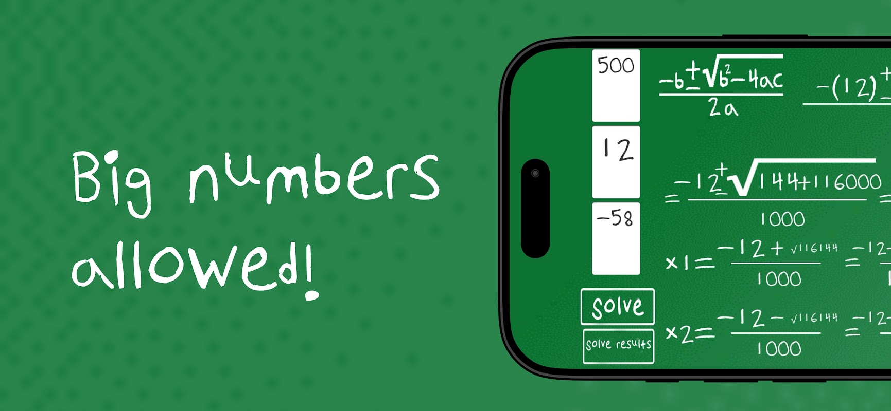 - Soluzione con un solo tocco: risolvi qualsiasi equazione quadratica all istante con un solo pulsante.