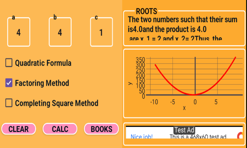 Ci sono quattro metodi elencati nel calcolatore di equazioni quadratiche per tutti.