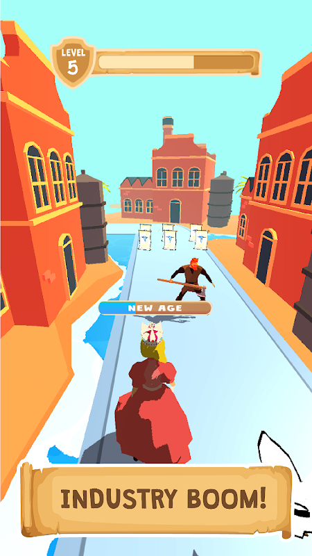 In 'Queen Run!' you play as a Magestic Empress. Your main goal is to advance your civilisation from the Stone Age to the Modern Times. Throughout the ages you will be faced with decisions! Are you a good ruler, or an evil tyrant? Decision is yours! Will you give your people the gift of literature or shake the earth with a rattling earthquake. Will you choose to give a feast and keep them happy or test them with acid rains and meteor showers. Will you advance to the medieval times or will you become a dashing modern president? Avoid bandits, collect resources, make choices and BUILD YOUR OWN EMPIRE!