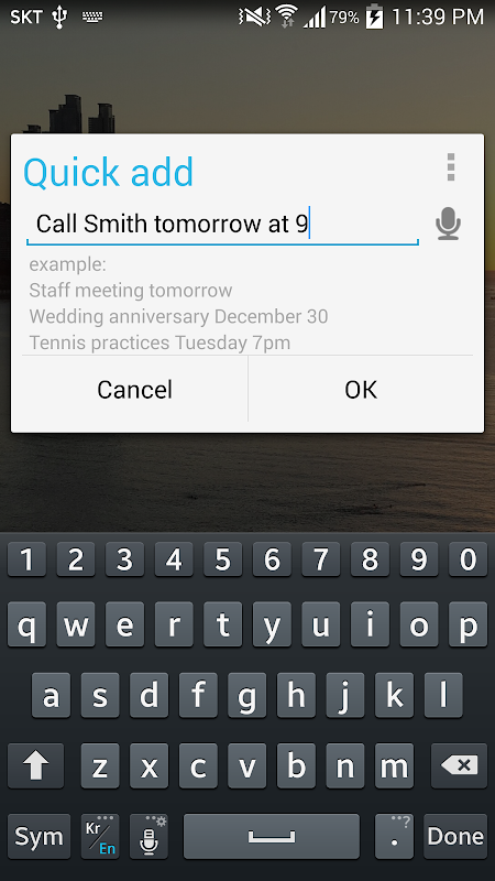 Aggiunta Veloce è un programma di utilità impressionante che consente di aggiungere un nuovo evento in un batter d'occhio. Con Quick Add, è possibile aggiungere un nuovo evento con il testo o con la tua voce. Il nostro motore di analisi del linguaggio naturale comprende diversi formati di data / ora e consente di aggiungere un nuovo evento più facile che mai. Inoltre forniamo varie impostazioni come calendario predefinito, promemoria personalizzati, ecc