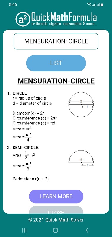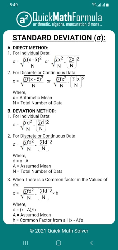 Quick Math Formula è un'applicazione Android per le formule matematiche della matematica a livello scolastico. Puoi sfogliare quasi tutte le formule matematiche da questa app. Quindi, è molto utile per praticare la matematica e fare riferimento alla formula di questa app in qualsiasi momento e in qualsiasi parte del mondo.