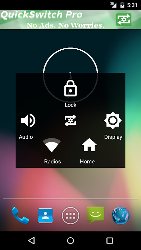QuickSwitch is the software replacement for all of your device's physical buttons. It is a fully working replacement for the Home button, lock button, media buttons, and can handle device display brightness and device radios including WiFi and Bluetooth. QuickSwitch is created in the effort to prolong the lifespan of devices which rely on phyiscal buttons to do these actions. As QuickSwitch is all implemented in software, it will not degrade over time, allowing users with ever very old devices to still use them operate as if they were new.